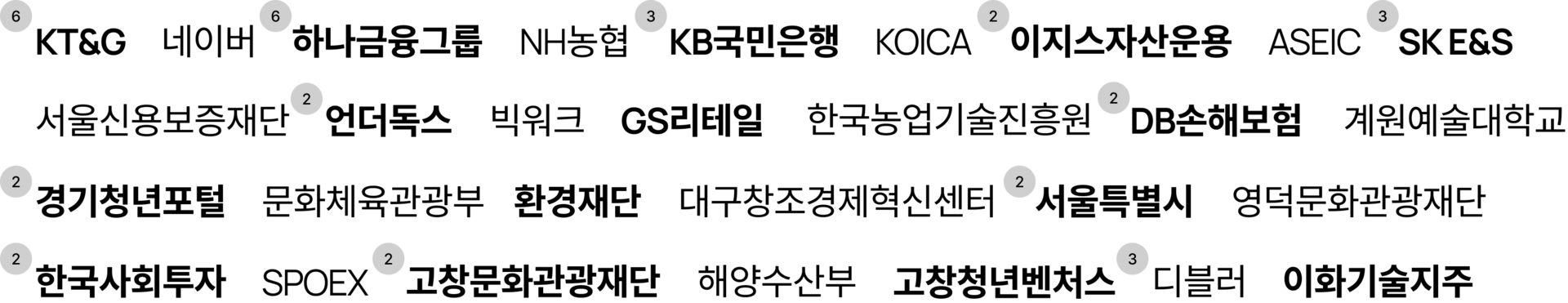 '하나소셜벤처 아카데미', '하나 POWER ON 소셜 벤처 유니버시티' 등 하나금융그룹의 굵직한 소셜 임팩트 과업을 다수 수행하며 검증된 신뢰도.
