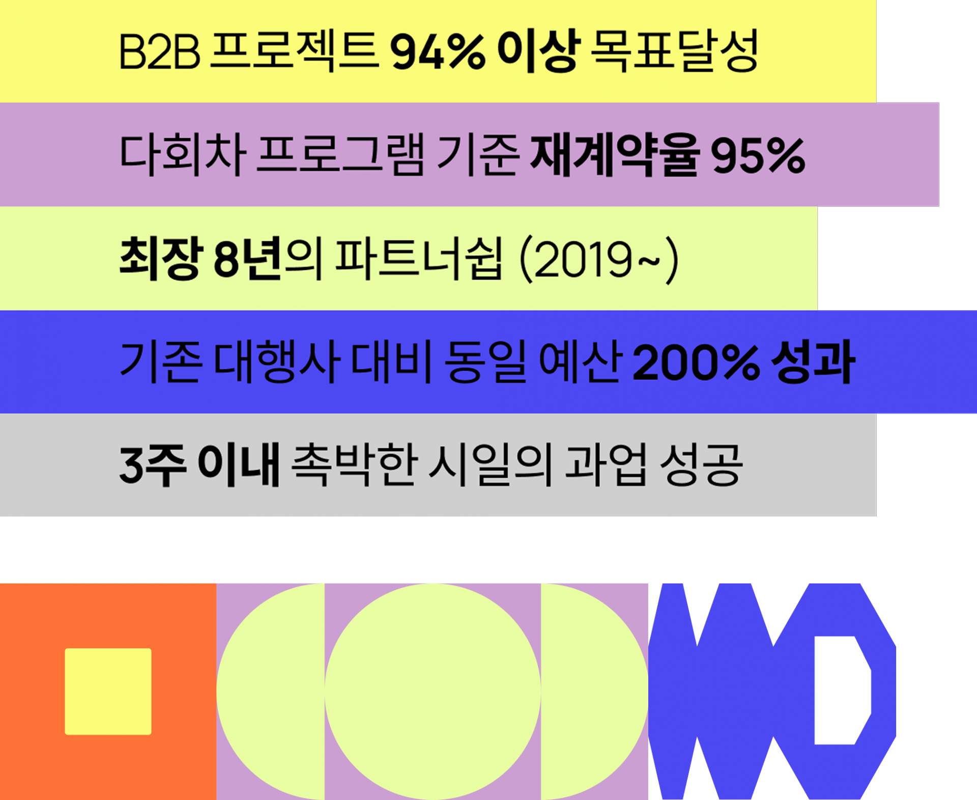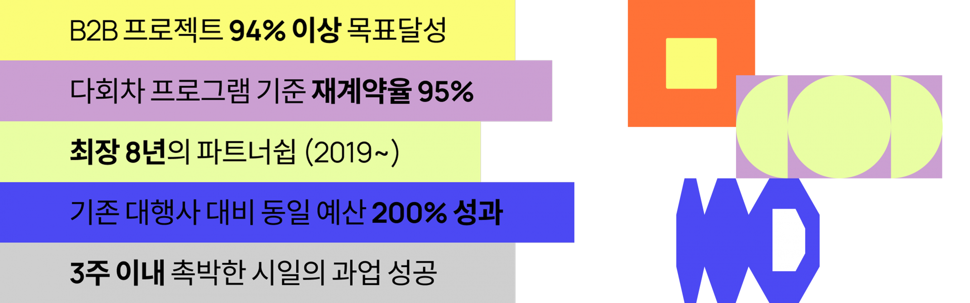 94% 이상의 KPI 달성 데이터가 증명합니다. 2019-2025 총 50건의 캠페인 중 47건 캠페인 KPI 달성