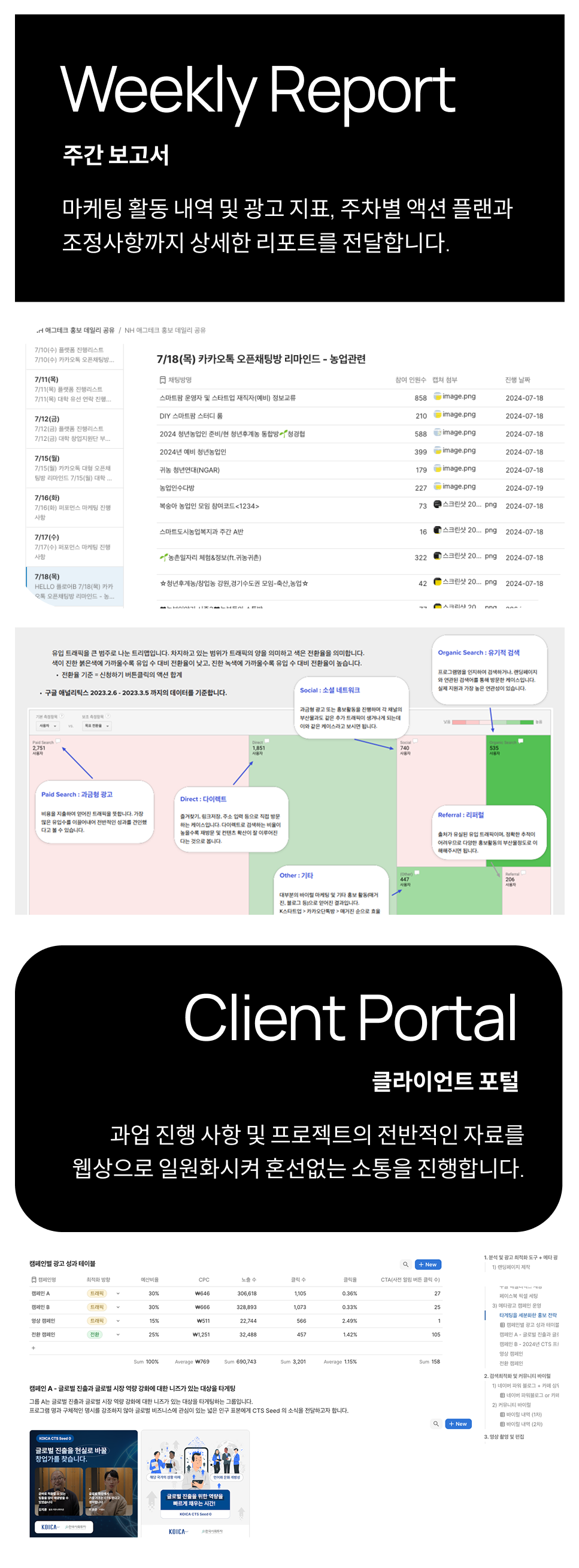 퍼포먼스 마케팅부터 다이렉트, 바이럴 마케팅에 이르기까지 KPI를 공유해주시는 것만으로 모든 준비가 끝납니다.