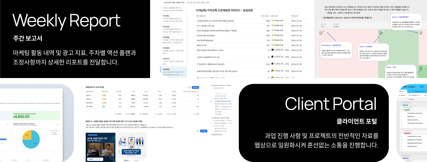 먼저 현황을 공유하고, 다음 스텝을 빠르게 준비하는 '소통 비용 제로'의 기민함을 제공합니다.